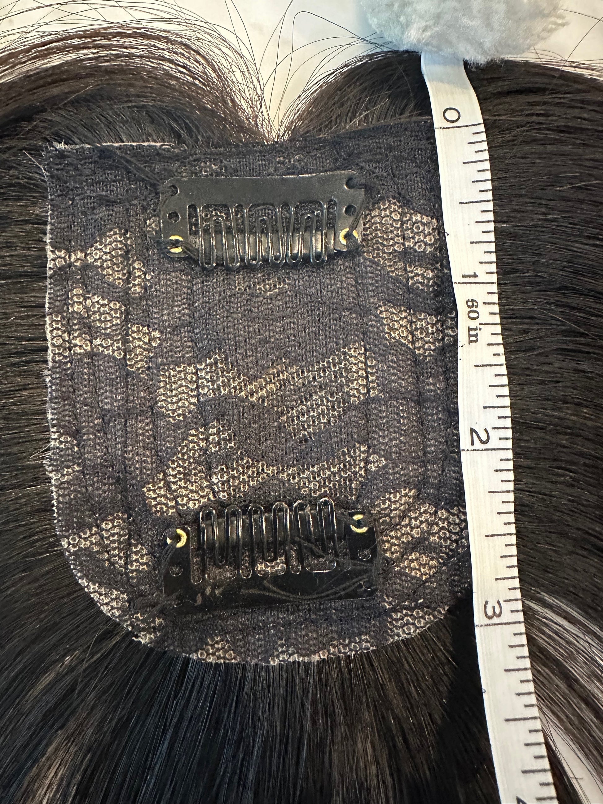 Lavia, 14 inches (35cm) silk based Mini Hair Topper with fringe, real human hair, best for hair thinning solutions, hair loss on top head