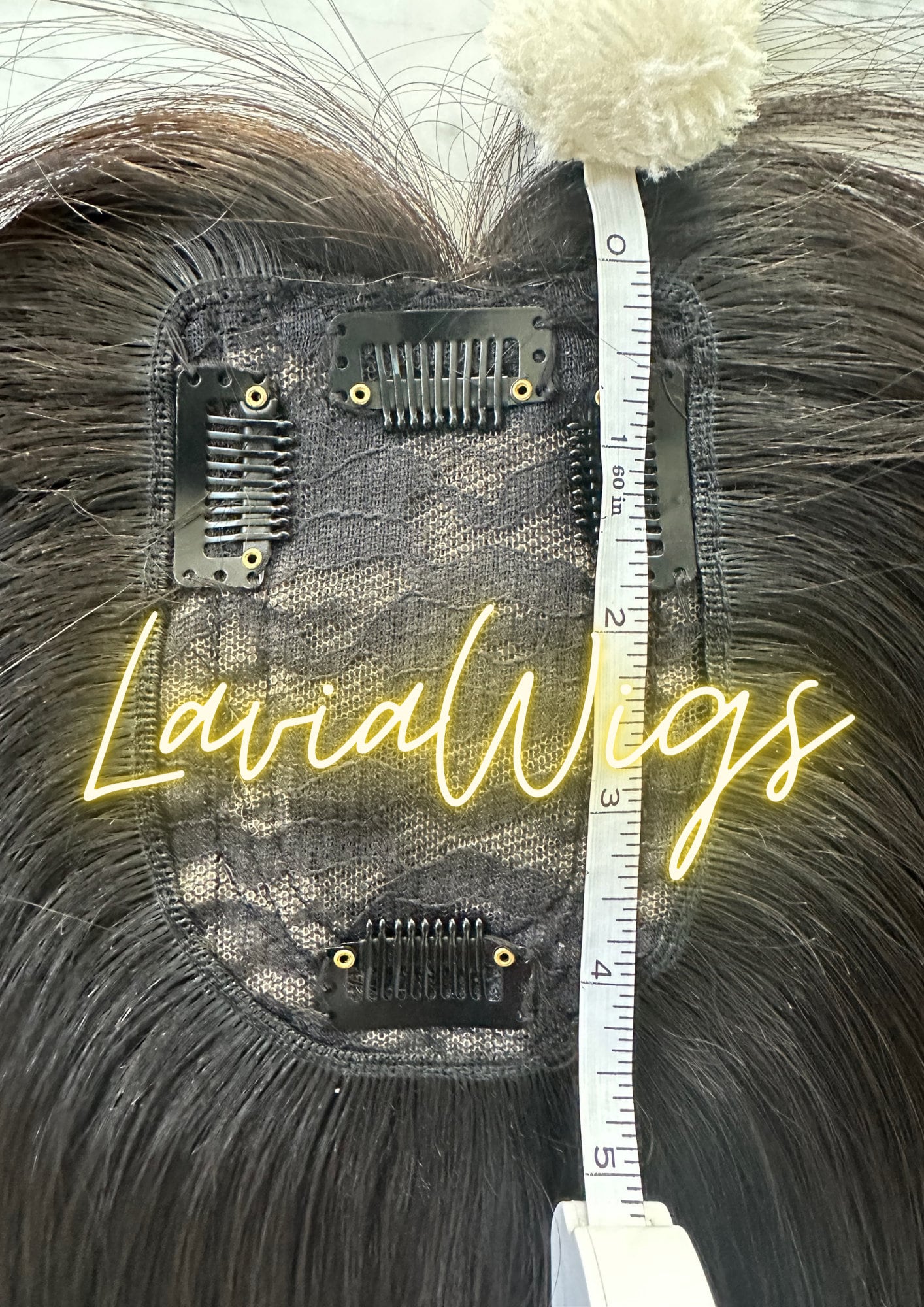 Lavia,chocolate brown handmade Medium density silk based real human Hair Topper, Best for medium hair loss - cover top area of your head