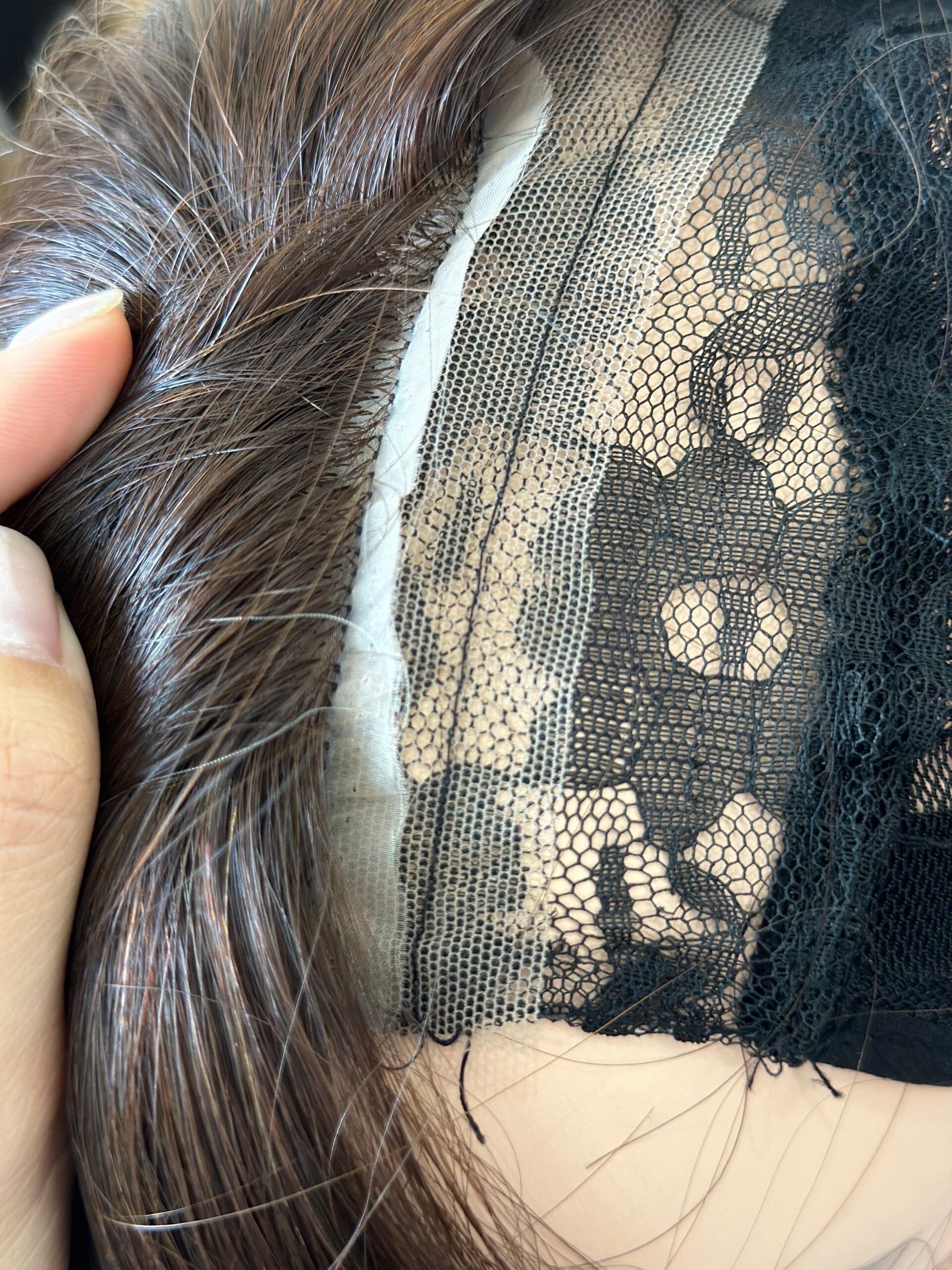 ❤️Last photo is captured at our workshop (not an internet stock photo) show casing the construction of ultra realistic silk based Lavia wigs and toppers cap.